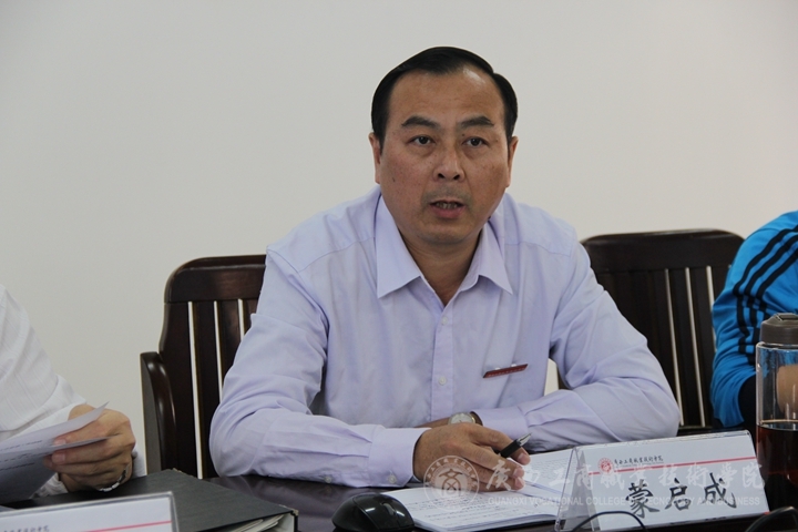 蒙启成副书记对2015年的宣传思想工作作部署。他指出,学院党委对宣传思想工作高度重视,党委书记出席会议指导工作,一些部门主要负责人分管宣传工作。蒙副书记指出,回顾历史,我党从弱到强,宣传思想工作起了至关重要的作用,每个时期党对宣传思想工作高度重视,不断丰富加强党的思想理论成果,为我党团结带领人民完成各项历史任务奠定了坚实的理论基础。针对学院宣传思想工作,蒙副书记指出,教育工作者要牢记办学方向,践行党的办学宗旨;要坚守责任,认真做好各项宣传工作。蒙副书记最后和与会人员共同学习了中共中央办公厅、国务院办公厅印发《关于进一步加强和改进新形势下高校宣传思想工作的意见》。