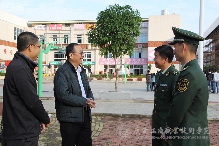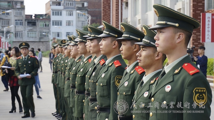 2015年12月3日上午,我院举行2015级新生军训教官见面会。学院党委副书记蒙启成、武警广西总队直属支队政治处副主任杨和奎等领导、学院党委学工部相关负责人、来自武警广西总队直属支队的军训教官、2015级新生班级各班班主任和2015级全体新生等参加了此次见面会。