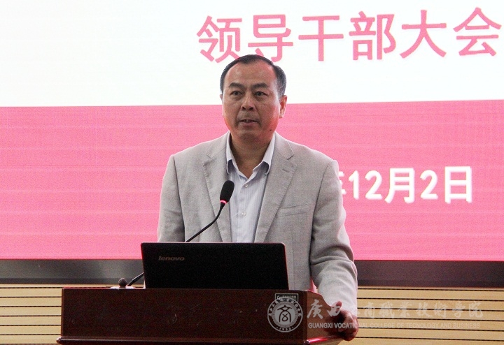 2015年12月2日下午,我院在院本部教学楼2119会议室召开了全体在职党员及科级以上领导干部大会,集中学习党的十八届五中全会精神和《中国共产党廉洁自律准则》《中国共产党纪律处分条例》。学院党委书记覃武云、党委副书记、纪委书记蒙启成、学院副院长李仕钦、副院长李维和副厅级调研员黄永蓬以及全体在职党员及学院科级以上领导干部参加了会议。