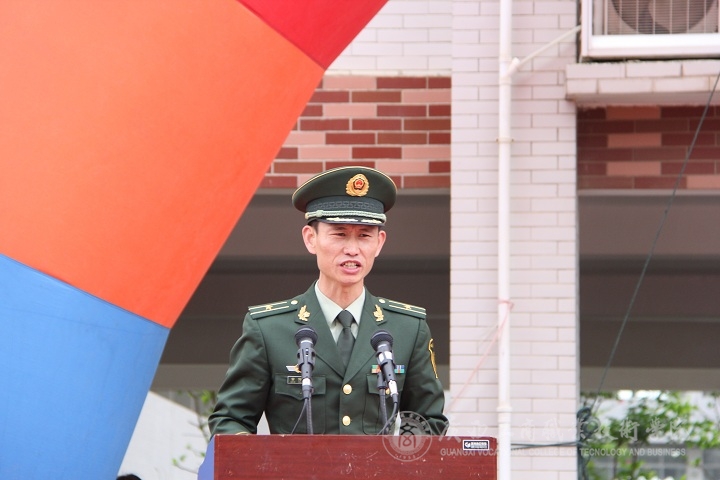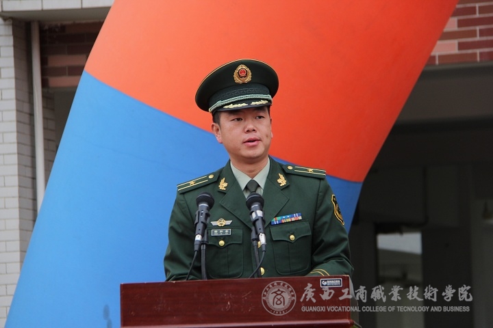 表演结束后,武警广西总队直属支队政治处副主任杨和奎在台上讲话。大会最后,由学院党委书记覃武云讲话,他向关心和支持我院军训工作并在军训中付出辛勤劳动的武警广西总队直属支队的官兵们表示衷心的感谢。希望同学们把从武警官兵身上学到的好思想、好精神、好作风,化为成长的动力,刻苦学习,积极进取,用青春的智慧与激情在大工商书写精彩人生。