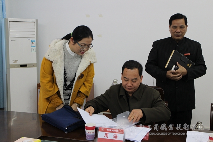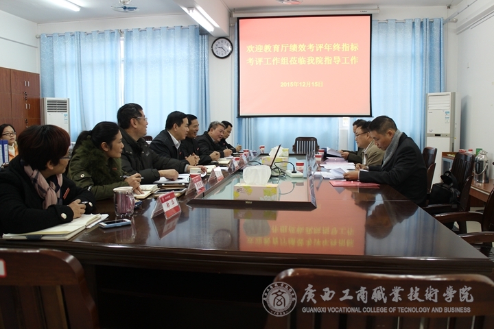 2015年12月15日,教育厅绩效考评年终指标考评工作组莅临我院指导工作,教育厅职成处副处长万锋锋对我院项目招标工程和自治区奖助学金评定工作进行了考察,我院负责教学工作李维副院长出席此次会议并向其进行了年度工作汇报,此外,教务科研处、会计系、财信系、学工部、现教中心等相关部门负责人参加此次会议,各司其职,井然有序地就相关考评工作组专家提出的问题进行了解答。