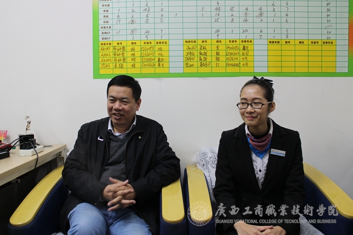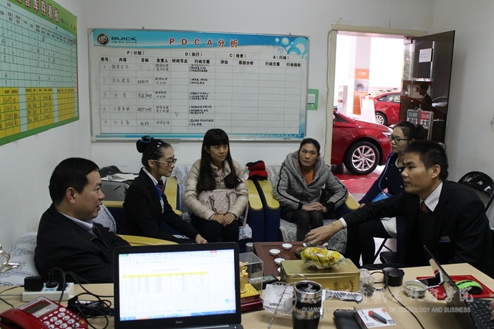 座谈中,玉林市得利汽车销售服务有限公司财务总监黄总监对我院财信系杜婵同学近三个月所取得的工作业绩和已掌握的专业技能给予了充分的肯定,并希望双方能在今后进一步加强校企合作。同时,黄总监还强调了学生提升为人处事、善于不断总结与思考等软实力的重要性,希望实习生们要有良好的工作心态,努力从基层锻炼,不断提高自身专业技能和竞争力,树立良好的职业规划,为今后不断提升奠定夯实的基础。
