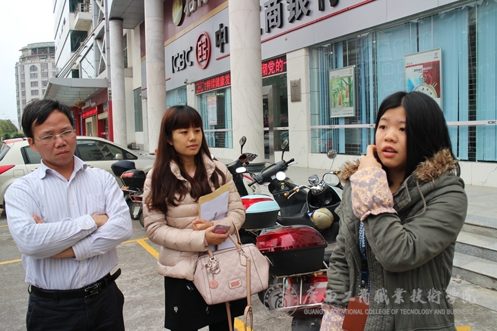 2015年12月11日,由学院李维副院长带队,财务处覃超颖处长、教务科研处阙勇平副处长、教务科研处田佩东老师,会计系就业秘书罗颖老师,财信系就业秘书莫凯淳老师等检查组一行6人,专程赴广西玉林市3家企业进行交流洽谈,检查看望13级7名顶岗实习生,了解学生实习相关情况,为深化校企合作寻找契机。