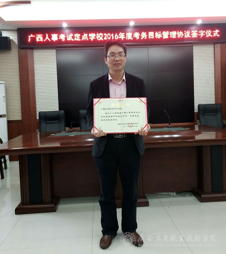 12月24日,从广西区人事考试院传来喜讯,我院在2015年度全区人事考试定点学校考务目标管理工作中,成绩突出,被评为先进工作单位。