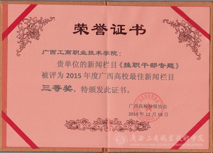 (我院《挂职干部专题》获评广西高校最佳新闻栏目三等奖)