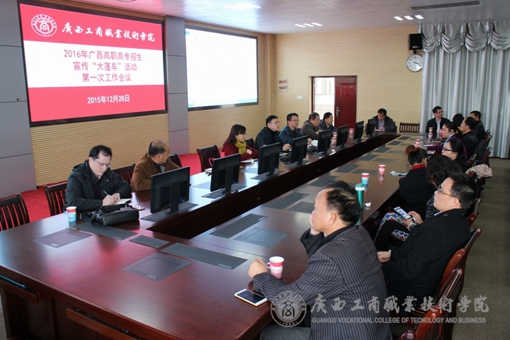 为顺利开展相关活动,提前做好准备工作,2015年12月28日下午3时,在我院教学楼2119会议室召开了2016年广西高职高专招生宣传“大篷车”活动第一次工作会议。来自全区各地的29所高职高专和本科院校招生部门主要负责人参加了此次会议。