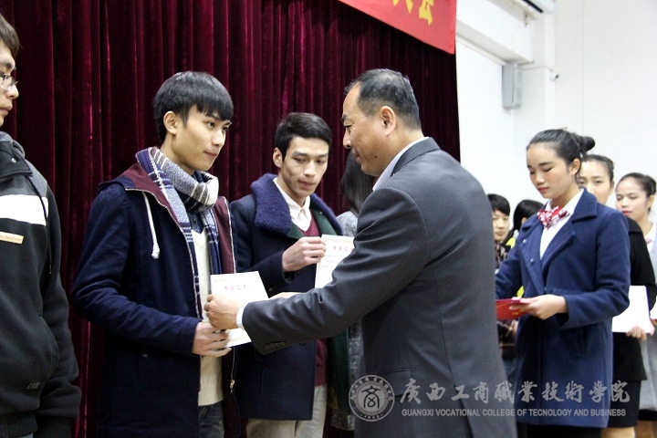 2015年12月29日19:20,我院在校本部2145报告厅召开了2014-2015年先进集体、先进个人表彰大会。学院党委副书记、纪委书记蒙启成出席并讲话。参加会议的还有党委学生工作部、学工处处长付光以及教务处、院团委、公共部、社科部、各系主任、副主任、辅导员、各班学生等。大会由党委学生工作部副部长张居设主持。