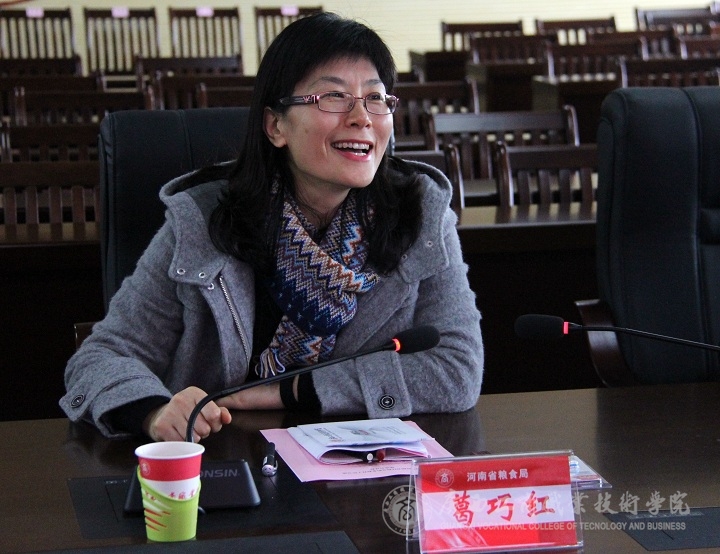 随后,河南工贸职业学院孙柏梁书记、河南省经济管理学校李俊伟校长、河南经济贸易高级技工学校郭国强校长依次发言,就建校、办学等方面展开热烈讨论。随后,河南省粮食局葛巧红副局长在会上讲话,表示对我院人才培养感兴趣,并与在座同志深入探讨教学方面等话题。