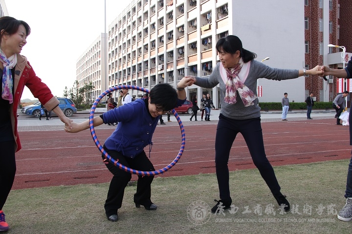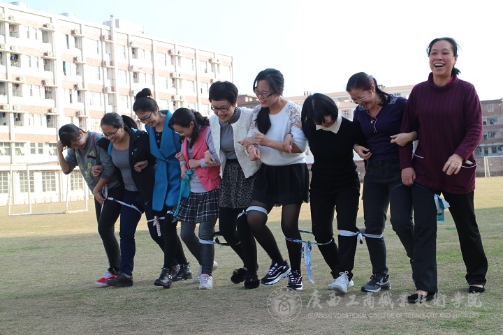 2016年1月5日下午,我院2015-2016学年教职工趣味运动会在校本部举行。学院党委书记覃武云、党委副书记、工会主席蒙启成以及各部门教职工参加了本次活动。