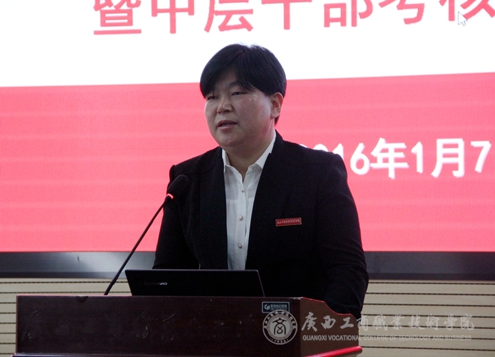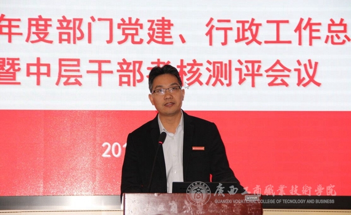 会议首先由覃武云书记发表讲话,接下来进行2015年度部门党建、行政工作总结,学院各机构主要负责人分别上台总结了本部门2015年度的工作概况、工作亮点、工作成绩以及2016年的工作设想,同时对履行党建工作责任和党风廉政建设责任情况进行述职,时长为5-8分钟。