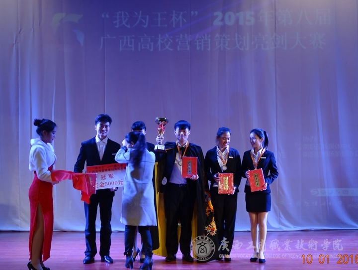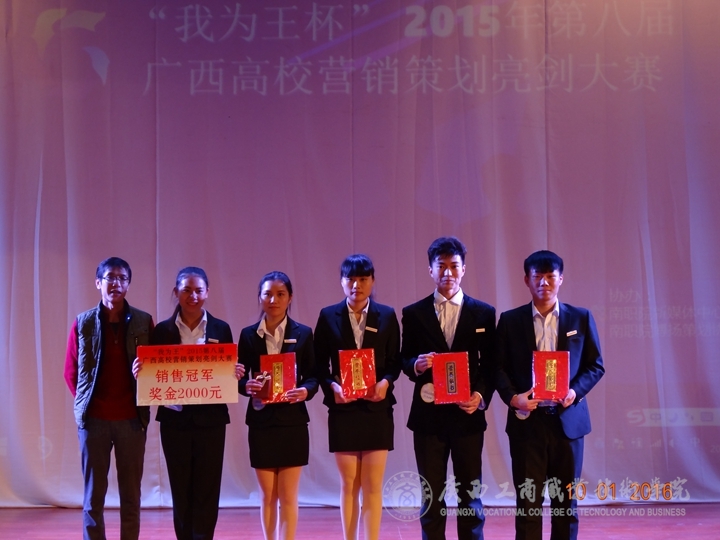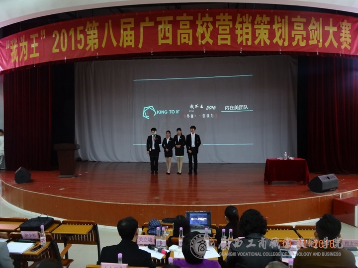 2016年1月10日13时,由中国市场营销课程标准开发中心广西分中心主办,广西南宁奥理可赢企业管理咨询有限公司承办、广西太常服饰有限公司赞助的“我为王”2015第八届高校营销策划亮剑总决赛在广西财经学院举行。我院共有4支队伍在两个多月的不断奋战中,经过层层地选拔,在广西区一百多支参赛队伍中脱颖而出,并进入到了总决赛环节。这是该赛举办八届以来,广商院首次拥有4支队伍进入总决赛并夺得一系列大奖的重大突破。