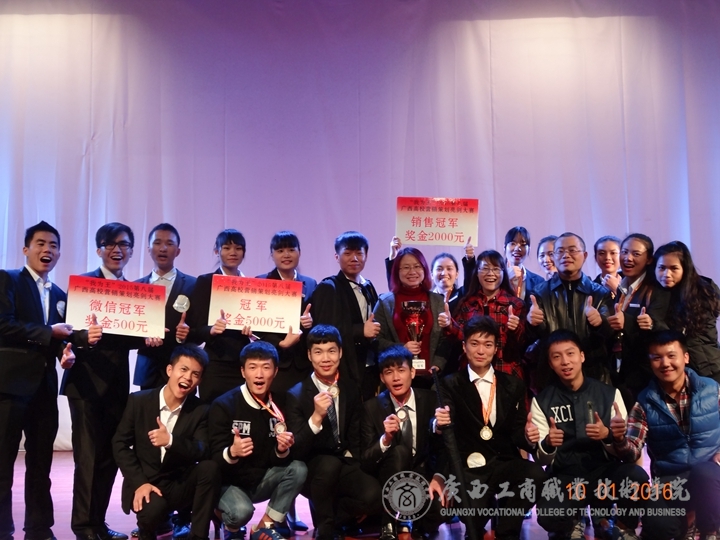 由营销1434班贺炳玮、何海秋、温婷宏、李雅倩及营策1432班刘行杰组成的“内在美”团队从初赛开始就以广西高校销量第一、广西高校总成绩第一的优异成绩进入决赛,经过团队选手一番精彩的PPT策划方案演讲,一举成功斩获总决赛冠军、销售冠军、最佳视频奖的好成绩!由营销1434班孔倩姿、余端端、张龙泉、梁进康、陈怡冲五位同学组成的“KING”团队也以优异的成绩一举夺下总决赛的季军。另外,由营销1432班蔡佳斌、营销1433班陈智慧、营销1431班石超兰、营策1503班莫小凡、营策1501班庞广玉组成的“多米诺”团队获得微信冠军、优秀奖!由营策1433班黎霞、营策1503班谢坤宏、马彩彬、许本海组成的“宏彬海”团队获得优秀奖!同时,李红梅教授与张煌强老师都获得了优秀指导教师奖!
