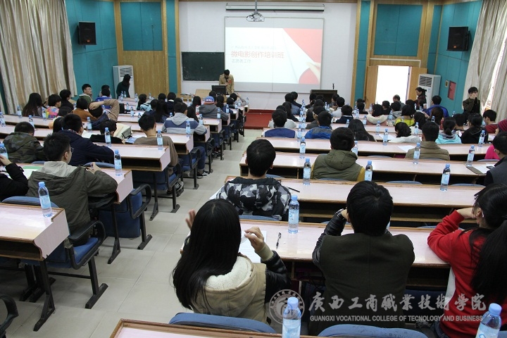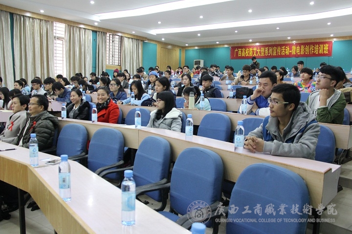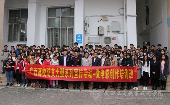 2015年1月9日下午,我院党委宣传部粟兰惠、李蓉荣、曾小峰、梁礼娜等四名同学代表,参加了在广西中医药大学召开的广西高校“防艾”大型系列宣传活动——微电影创作培训班及志愿者工作会议。参加培训班的还有来自广西各个高校的老师和同学。