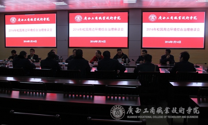 2016年1月14日下午16:00,我院联合相关合作单位在校本部2119视频会议室召开2016年校园周边环境综合治理座谈会。学院副院长李仕钦、后勤管理处以及西湖派出所、石埠食检所、石埠城管、高新城管、罗文社区等单位代表参加了座谈会。