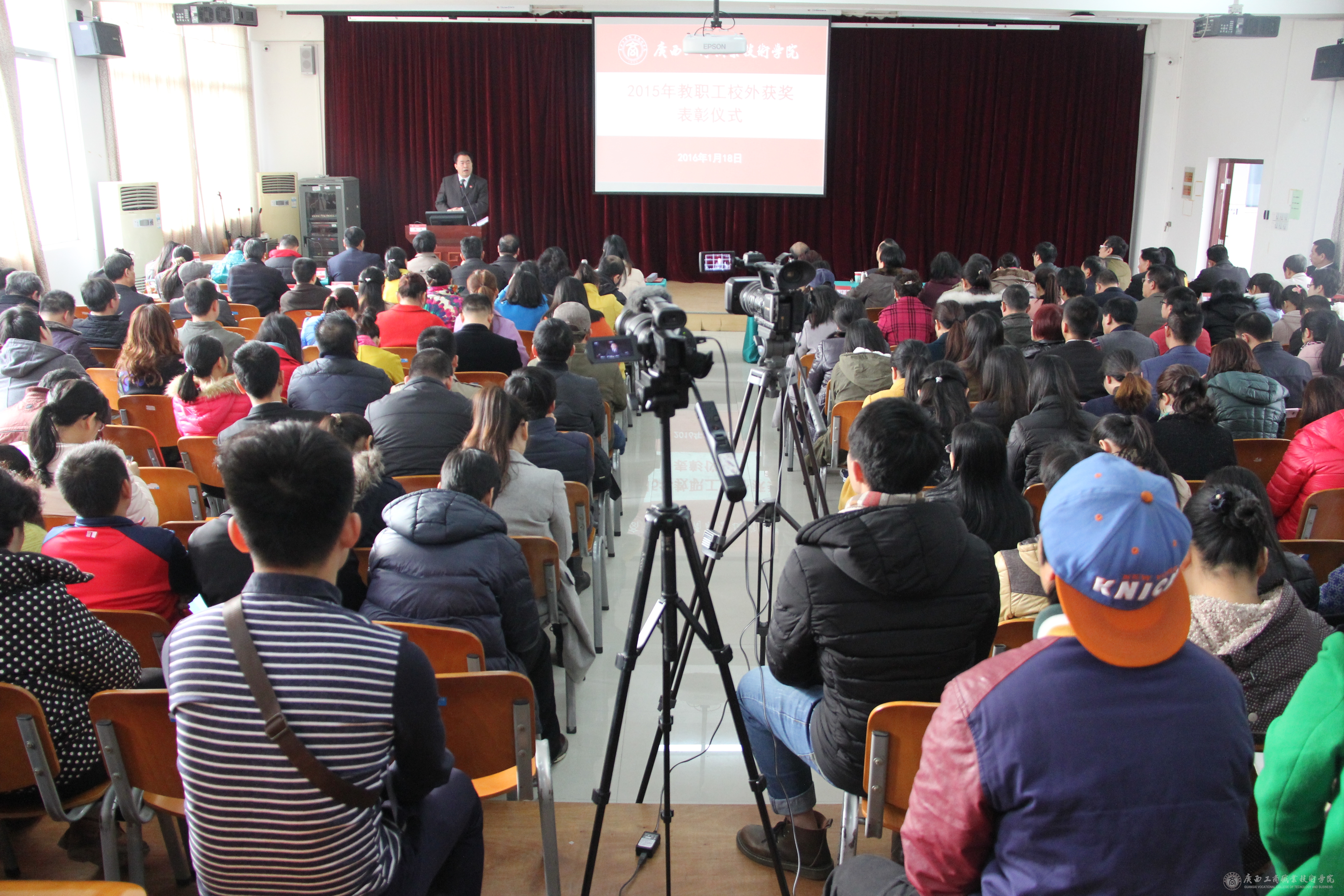 2016年1月18日上午9:00,我院荣休仪式暨2015-2016学年第一学期期末大会在校本部教学楼2145报告厅召开。学院领导、各部门各单位负责人,全体教职员工参加了大会。