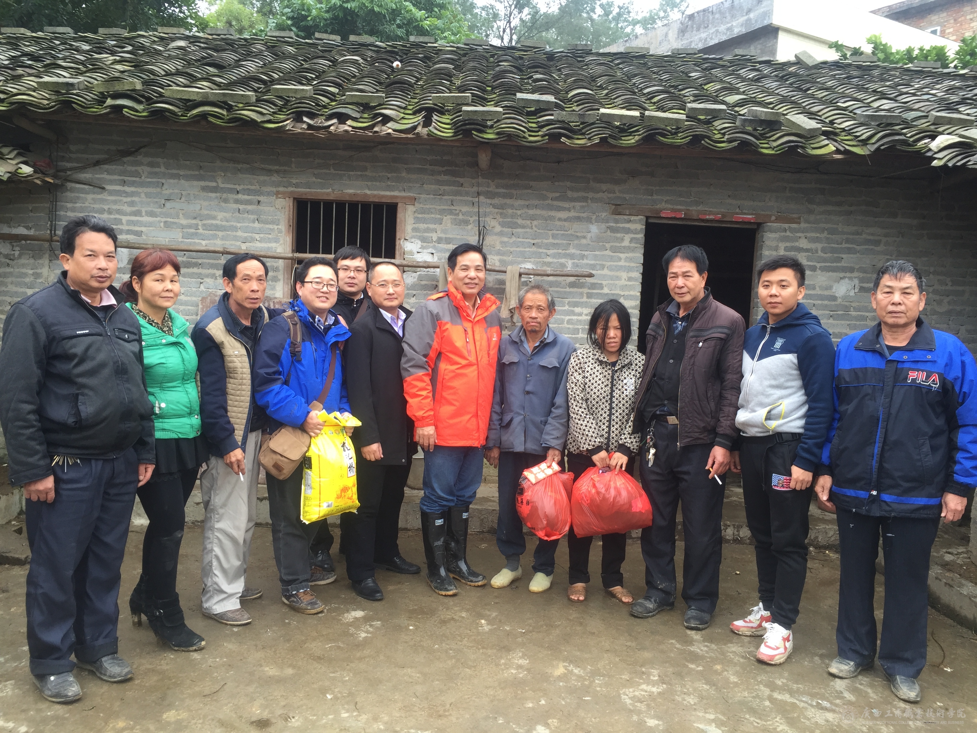 春节前夕,教务科研处党支部、学工处党支部与陆川县水亭村党总支、那若村党总支、南宁培育图书有限责任公司联合开展了“扶贫济困送温暖”活动,为水亭村、那若村9户贫困户和1户困难党员各送去200元慰问金、一带大米和冬衣若干。这次慰问的贫困户和困难党员都是精准扶贫识别工作中筛选出来的绝对贫困户,基本是因病因残致贫,脱贫难度很大。在2016年春节到来前夕,教务科研处党支部牵头组织了这次活动,教务科研处的教职工捐献了100多件衣物,南宁培育图书有限责任公司捐献了3000元慰问金。教务科研处韦胜强处长、学工处付光处长、水亭村党总支李书记、第一书记谭爵玺、那若村党总支黄书记、第一书记谭序光、南宁培育图书有限责任公司李经理等带领精准扶贫识别工作队员、公司职员和村委干部20多人参加慰问,大家认真了解贫困户的生产和生活状况,鼓励贫困户贫困不丧志,在政府的帮助下争取早日脱贫。贫困户和困难党员对大家顶着寒风、冒着严寒前来慰问表示衷心感谢,并表示努力生产自救,尽快脱贫致富。