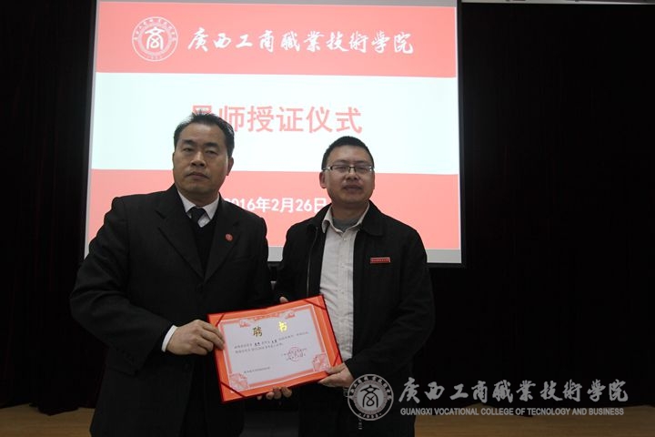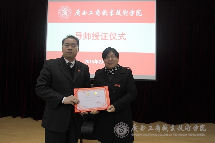 2016年2月26日上午9:15,我院在校本部教学楼2145报告厅举行2016年导师授证仪式。学院领导班子成员以及全体教职工参加了该仪式,仪式由学院党委副书记蒙启成主持。