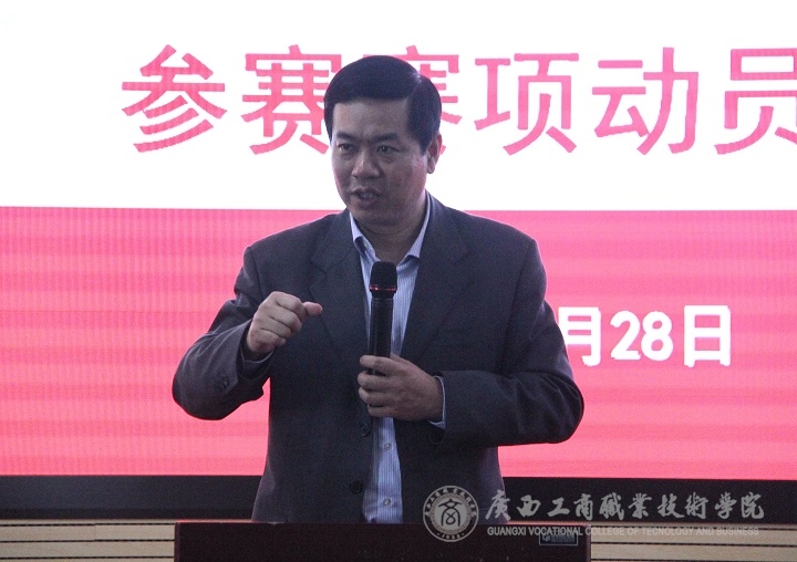 本次技能大赛设有会计、市场营销、汽车营销、报关、电子商务、文秘、英语口语、艺术技能(音乐表演)、中餐主题宴会、西餐等10个参赛项目,我院共12支队伍,33人参加。会上,李维副院长做动员致词,他首先对我院参赛师生的辛勤付出表示感谢,强调参赛队员要树立信心,充分发挥水平,以轻松的心态去迎战。最后李维副院长祝愿各个参赛项目的选手取得更好的成绩,通过比赛获得更多的收获。