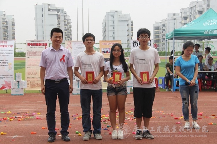 亭凉医院副院长防艾专家李永振副院长、自治区卫生计生委防艾办张小磊博士分别在活动现场致辞。其次进行了互动环节,展开了防艾知识问答。接着,现场还进行了“坐地花开”爆气球游戏,我院学子积极参与。随后,在“微影传情 以爱防艾”情景剧表演环节中,到场高校代表队依次表演以防艾为主题的情景剧。经现场评委点评,我院代表队的表演节目 《反思》表现突出并荣获二等奖。最后,我院代表队领取了志愿者证书,并合影留念。