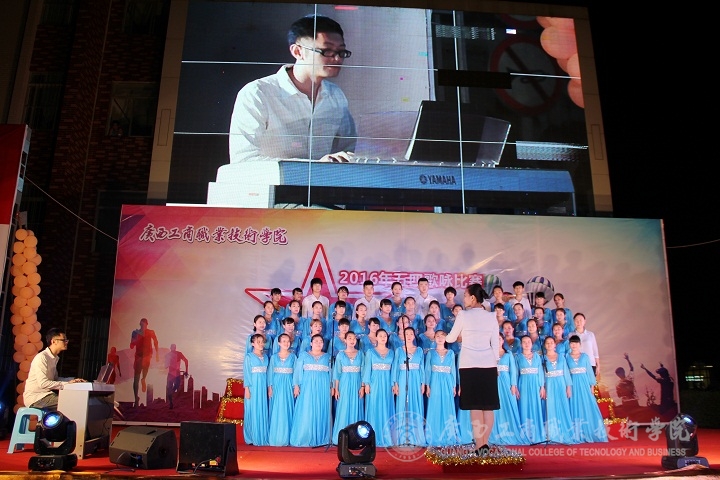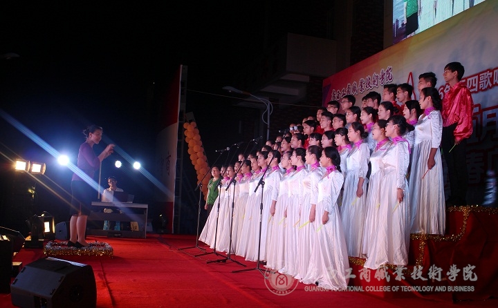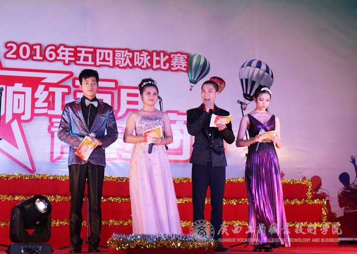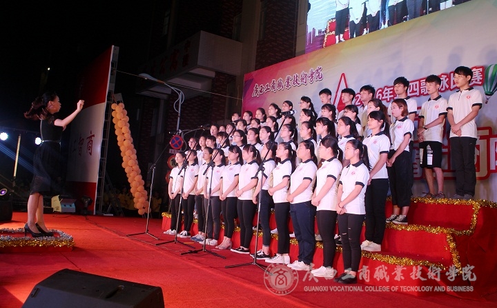 2016年5月6日晚,“唱响五月,青春广商院”五四歌咏比赛晚会在我院本部LED大屏幕下隆重举行。学院党委书记覃武云、学院党委副书记蒙启成及学院办公室、宣传部、学工部、后勤处、各系相关负责人和各系师生出席晚会。晚会还特地邀请了外校的音乐老师黄华、钟丽娟、徐斌、黄金、张勤来作为评委。