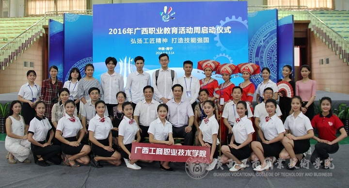 (我院参展团队在2016年广西职业教育活动周启动仪式现场合影留念)