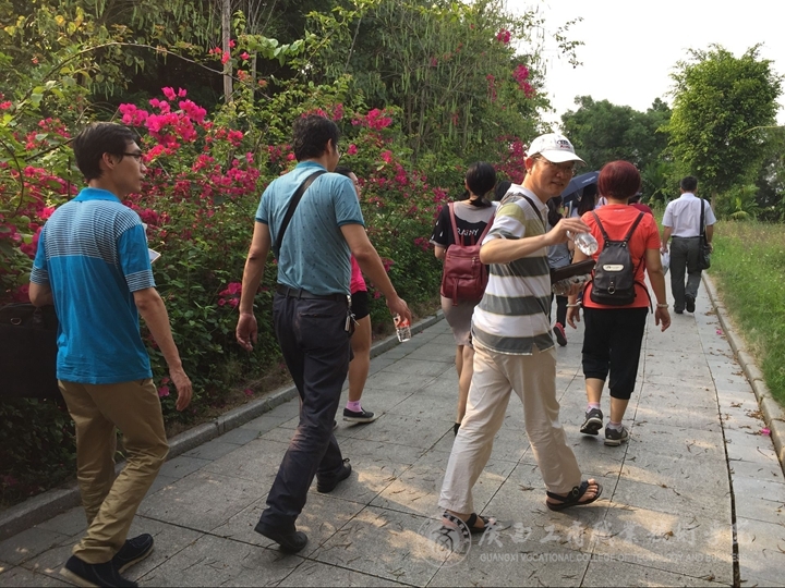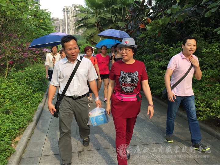 艳阳普照,暑意正浓。2016年5月4日下午16:10,pp电子官方网站全体教职工在学院校本部一同出发前往相思湖湿地公园开展“享健康 跟我走”徒步寻宝活动,学院党委副书记蒙启成参与到“寻宝”队伍中,共有70人参加了本次活动。