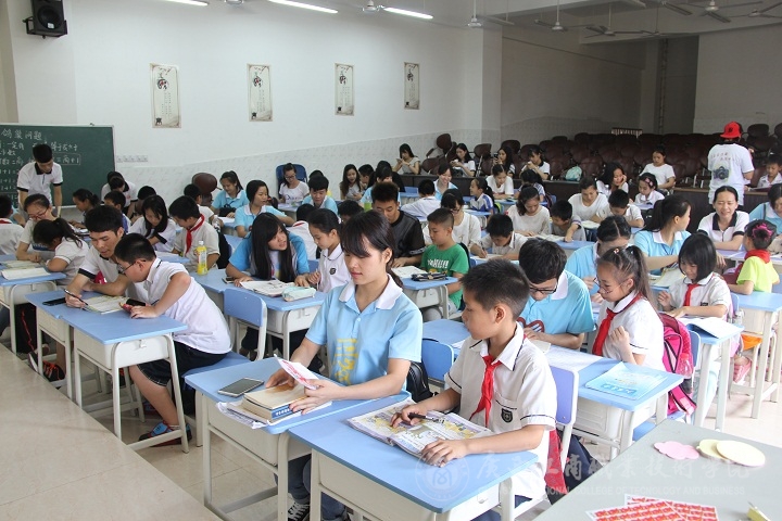 随着轻快的下课铃声,小朋友们来到教室,准备上一堂特殊的课程。然而,可爱的小朋友们并没有想象中的调皮。初次与“小老师”们接触,大部分小朋友们显得腼腆和害羞,经过交谈后才显得放松,教室内欢笑声也逐渐多了起来。有的“小老师”在指导做作业、有的辅助预习、有的在复习。急促的下课铃声响起,一节课很快就结束了,小朋友们收拾好沉重的书包与“老师”们道别便匆匆离开了。支教的圆满落幕,周末也随之来临。挥手之间告别的不止是小朋友们,还有那紧张的学习日。