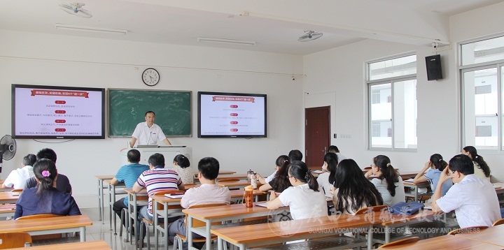 2016年6月3日下午,学院党委副书记、纪委书记蒙启成同志在我院校本部2207教室为党员同志们上 “两学一做”党课。本次党课主要围绕深入学习、贯彻落实“两学一做”展开。