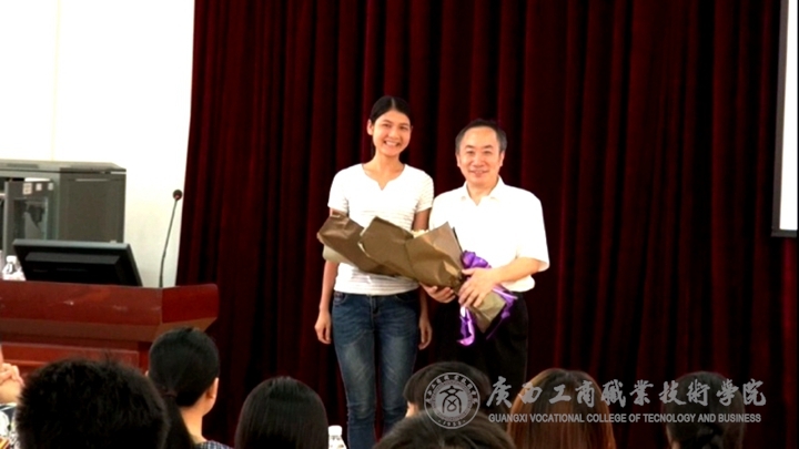 龚教授的讲座充满激情,语言幽默,生动活泼,深入浅出,充分展示了大师的风范。师生们从中了解了广西在民族学研究领域的发展情况,领悟了“成功”与“付出”的正比关系。“思政沙龙”的三位同学还与龚教授进行了积极的互动。同学们为龚教授献上了鲜花和“商院风”文化扇,表达了师生们对龚教授的尊敬和喜爱。