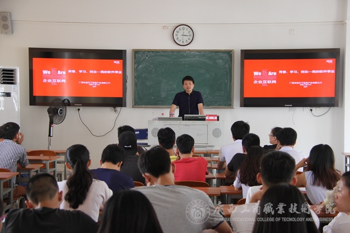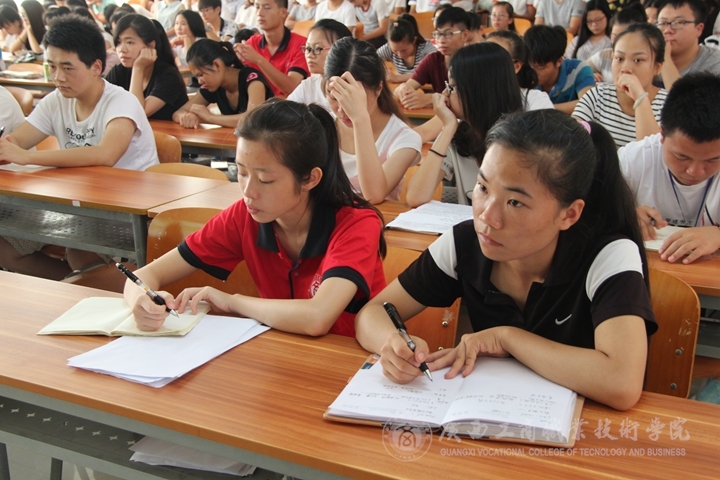 袁开学长在大一期间自考本科,大专毕业后在广西大学就读工商企业管理专业。大学本科毕业后用了6年时间创办了广西步道天下信息有限公司,出任公司CEO。袁开学长以勤奋学习为本为主题展开了专题讲座,在讲座中他强调,确定了方向,就应该集中精力起加强专业的学习。他分享到自己以前的经历,在上课的时候都很喜欢坐在第一排,上课前都很喜欢喝老师互动,喜欢多跟老师进行接触和交流,以便了解当今时代的就业发展趋势。