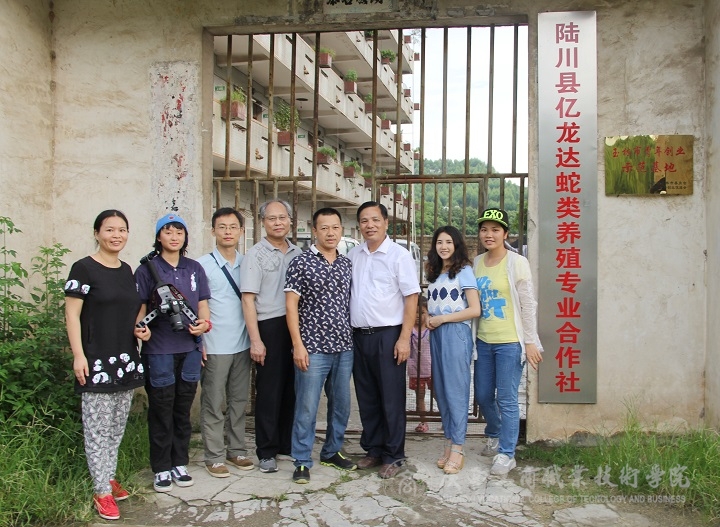 (慰问团队在蛇类养殖处合影留念)