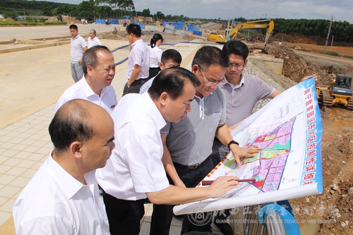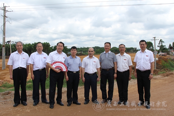 签约仪式结束后,武鸣城区领导陆耀忠同志带领广商院签约代表一行人实地观看了广商院初步确定的位于武鸣东片区的新校址。