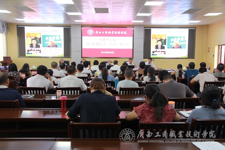 2016年8月25日下午,我院于校本部2119视频会议室召开学院党委理论学习中心组2016年第四次(扩大)学习会。学院党委书记覃武云、院长陈杰、副院长李仕钦、副院长李维、副厅级调研员黄永蓬、党委委员、以及各部门党政主要负责人、工会和团委主要负责人出席了本次会议。会议由覃武云书记主持。