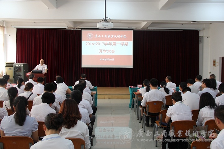 2016年8月26号上午,我院于校本部2145报告厅举行了开学大会,我院的领导班子成员以及全体教职工参加了此次会议,会议由覃武云书记主持,学院院长陈杰做开学工作报告。