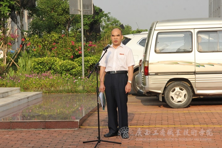 升旗完毕后,由学院党委书记覃武云同志致辞,覃武云书记表示,9月8日广商院将迎来3000多张新面孔,也特别提到了暑假期间举办的奥运会,对习近平总书记在观看中国代表团的表现后凝炼的奥运精神进行了校内传达。覃书记说,奥运会赛场上奥运健将们为国争光,女排在奥运赛场上体现的精神——拼搏、团结、奋斗,创造、坚持、传承,遇败不馁,逢胜不骄,一球一球拼,一分一分咬,拼得酣畅,咬得艰辛,忍出能耐,赢出自信,覃武云书记强调,我们要把奥运精神运用到学习生活中,努力创造佳绩。