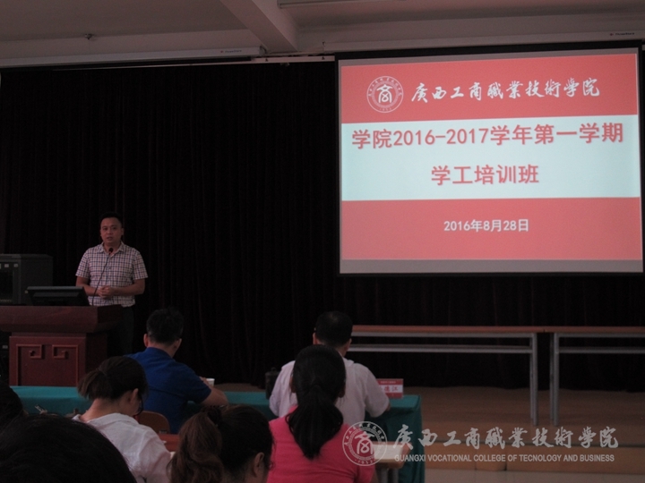 2016年8月28日下午,我院在校本部教学楼2145报告厅举办了2016-2017学年第一学期学工培训班,学院党委副书记蒙启成、各系党总支书记、系学工副主任、就业副主任、全体辅导员及学工处全体人员参加了培训,本次培训班由党委学生工作部副部长廖显图主持。
