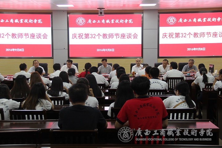 尊师重教是中国的优良传统,早在公元前11世纪的西周时期就提出“弟子事师,敬同于父”。2016年9月8日下午2:40,我院在校本部教学楼2119会议室召开“甘守三尺讲台,争做‘四有’教师”——庆祝第32个教师节座谈会。自治区粮食局副巡视员、人事处处长韦尚英、学院党委书记覃武云、学院院长、党委副书记陈杰及其他学院领导、各部门、各单位代表、教师代表以及各系优秀学生欢聚一堂,共同庆祝教师节。会议由学院党委覃武云书记主持。
