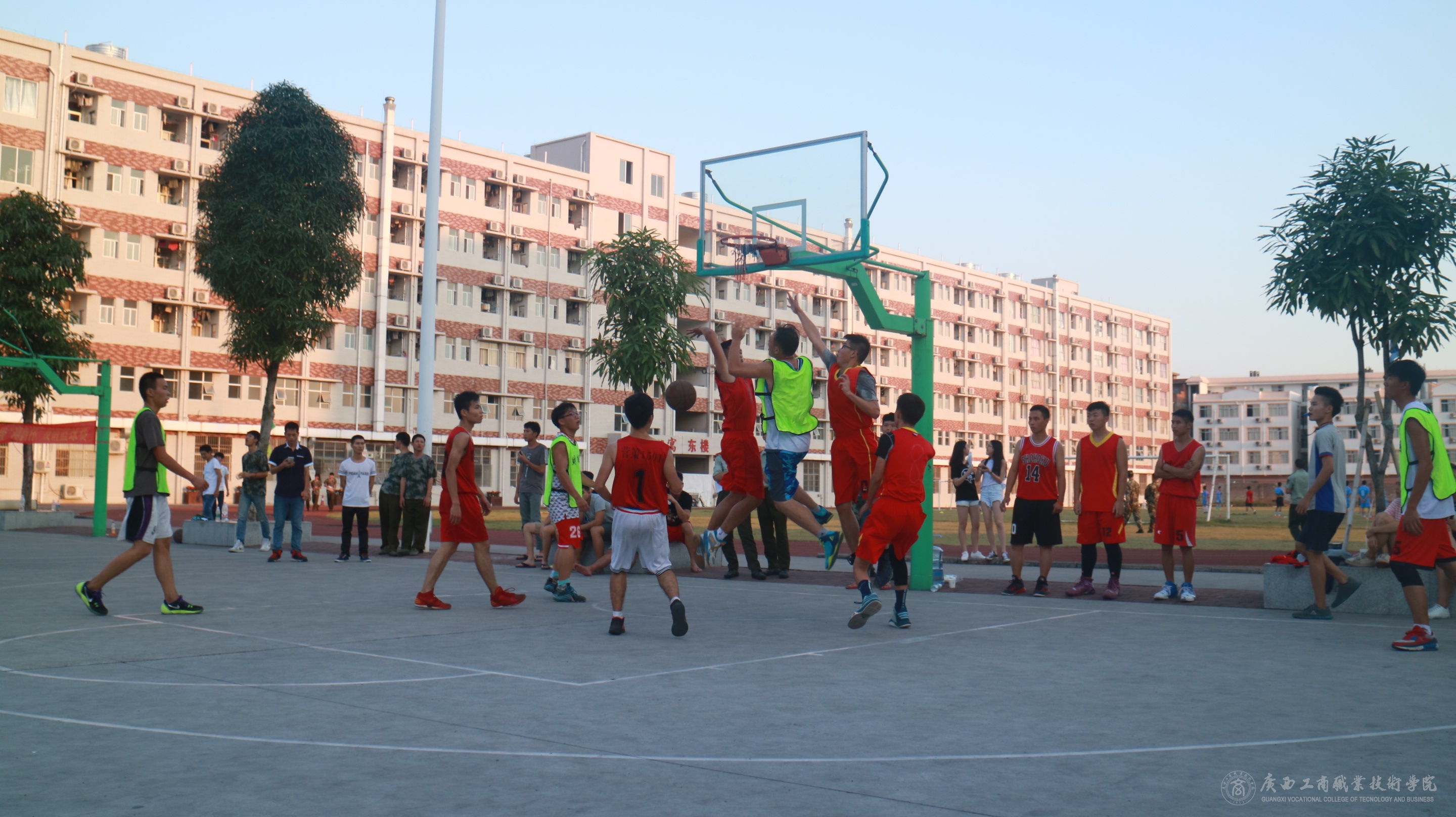 9月28日下午,2016年广商院“迎新杯”篮球友谊赛于在学院篮球场圆满落幕。 由学院团委主办的本次比赛共有6支代表队参赛,6支队伍的角逐分为两个阶段,第一阶段在9月26日-27日进行,由2015级学生代表队和2016级各系学生代表队按照赛前抽签顺序展开车轮战;第二阶段在9月28日进行,由教师代表队和教官代表队进行友谊赛交流。