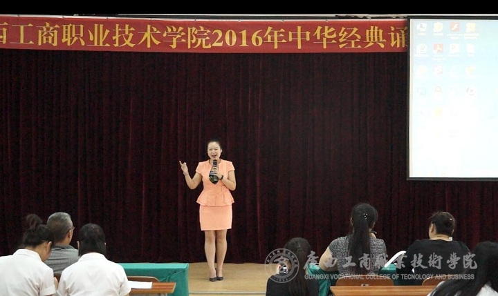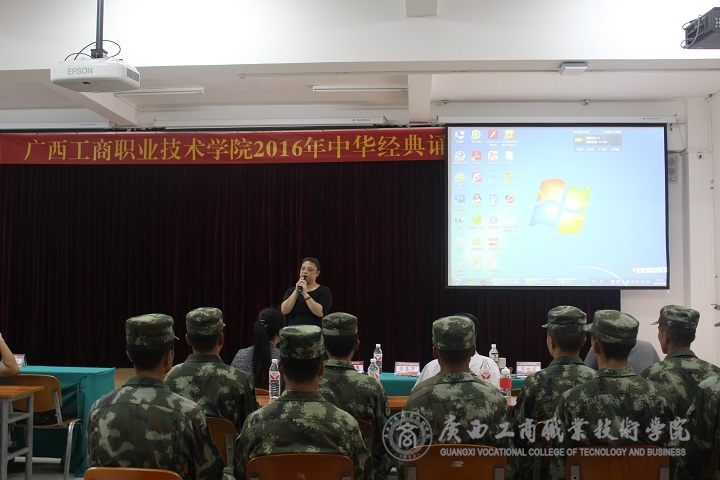 “诗的语言,典藏着五千年悠久的历史文化;诗的声音,演绎着不朽历史的风骨铿锵”。2016年9月28日下午,广商院“中华经典诵读”比赛在院本部2145报告厅拉开帷幕。蒙启成副书记亲临现场与各部门、系部的老师以及受邀到学院指导军训的部分教官观看了本次比赛。