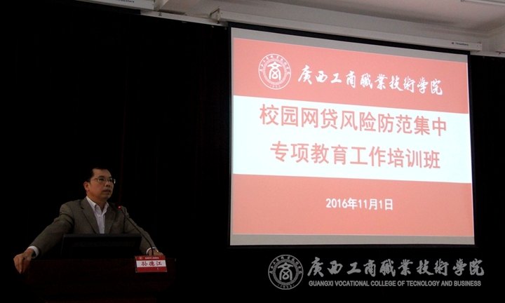 紧接着,覃武云书记进一步指出校园网络借贷的风险。一是某些小型借贷公司多为非法民间借贷组织,借贷手续不规范不合法,并伴有利息高暴力收账等性质特点。二是当你无法支付高额利息时借方便以不法手段去威胁甚至勒索你或者你的家人,担保人。三是部分学生会以个人名义为第三方贷款提供担保,当第三方不能如期偿还贷款,借贷公司直接要求学生承担费用,很多学生防范意识淡薄并不知情。