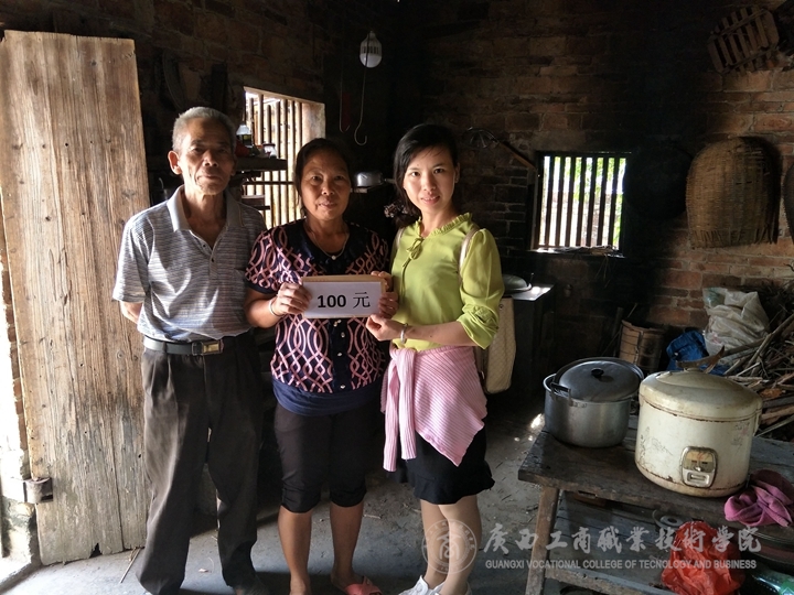 座谈会结束后,双方于良村村委举行了扶贫工作经费捐赠仪式。陈宁春副院长代表我院捐赠陆川县古城镇良村村扶贫工作经费壹万元整。随后,我院13位教师对帮扶贫困户进行了入户走访,了解贫困户的现状,并送上慰问金。