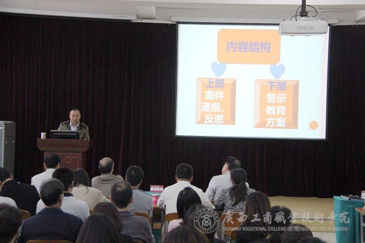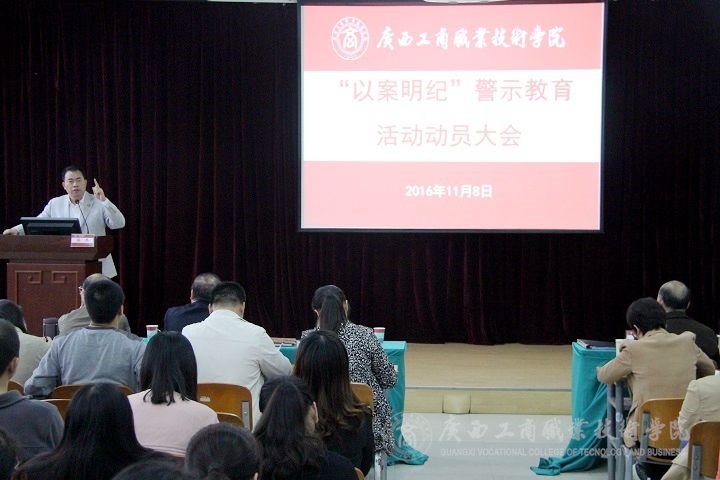 2016年11月8日下午,我院在校本部教学楼2145报告厅召开“以案明纪”警示教育活动动员大会。学院党委书记覃武云、党委副书记、院长陈杰、党委副书记、纪委书记蒙启成、副院长李仕钦,学院全体教职工参加了本次动员大会。