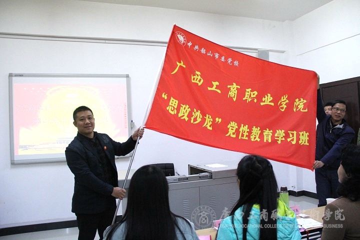 仪式上,在主持人的带领下全体学员起立佩戴胸章齐唱《东方红》红歌。韶山市委党校常务副校长王君尧为开班仪式致辞,他对我院师生的到来表示热烈地欢迎并给大家详细地介绍了韶山的情况。随后我院社科部主任刘万英教授为开班仪式致发言辞,她代表学院对全体学员提出了三点要求:一、提高党性意识,自觉向革命先辈看齐做合格共产党员;二、明确学习任务,扎扎实实地投入到教育学习活动当中;三、严肃学习纪律,保证学习任务顺利完成。最后韶山市委党校副校长王君尧为我院“思政沙龙”韶山党性教育学习班授予班旗,我院社科部陈凤俭老师代表接受班旗,开班仪式圆满结束。