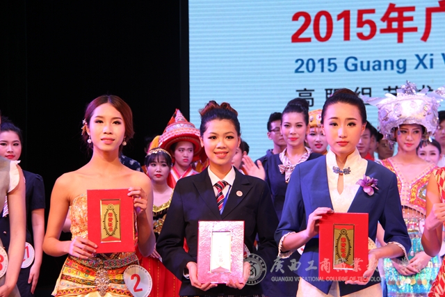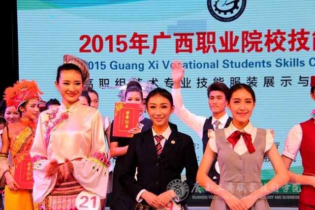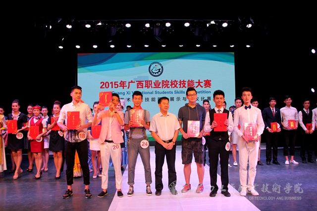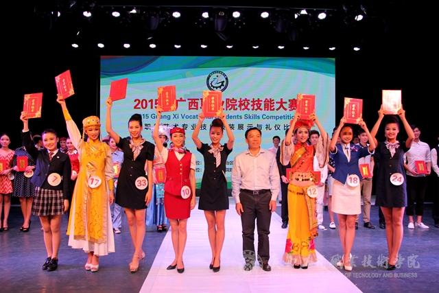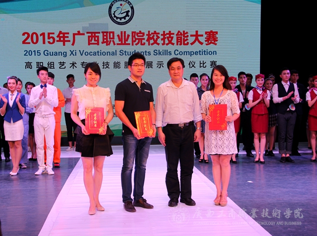 2015年4月29日下午,广西职业院校技能大赛礼仪技能赛项在广西艺术学院南湖校区举行,在陶晓斌、朱克敏、梁晓霞三位老师的指导下,我院9名同学代表学校参加比赛,其中7名同学分别斩获女子个人赛一、二、三等奖,男子个人赛两个二等奖,两个三等奖。我院还获得团体赛三等奖的好成绩。