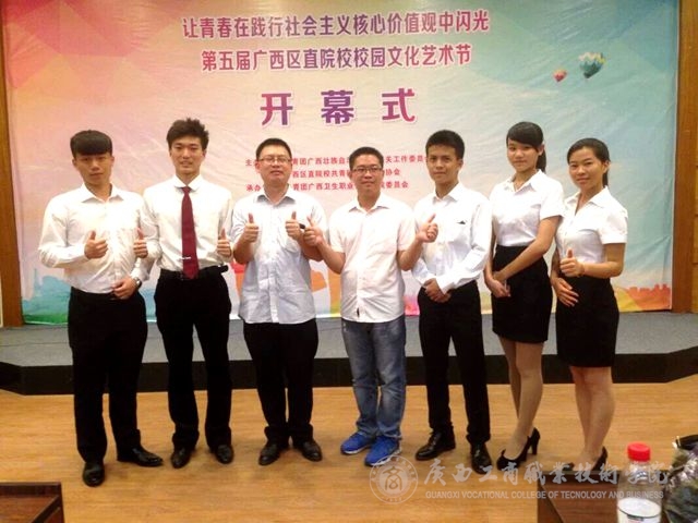 2015年5月4日下午14:30分,广西区职院校文化艺术节之创业设计大赛决赛在广西卫生职业技术学院图书馆一楼报告厅举行,我院代表队参赛选手经过严格的筛选与激烈的角逐顺利在30余个院校70多只代表队中脱颖而出成功晋级决赛。