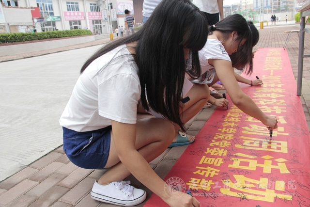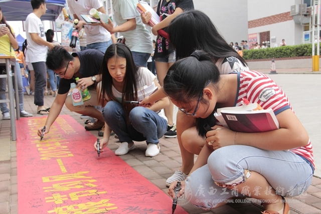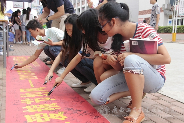 2015年5月25日中午,我院在校本部食堂前举行粮食科技活动周——节粮倡议签名活动并发放爱粮节粮科普宣传册。签名活动现场“粮食科技活动周”的宣传横幅格外醒目,过往的同学、老师们甚至是扫地的阿姨都纷纷驻足停留在横幅前,参与签名活动,在横幅上留下自己的名字。活动现场还给同学们派发了关于节约粮食的宣传册子,册子上“一滴汗,一滴粮”“我光盘,我光荣”等宣传标语引人深思,同学们拿过宣传册边走边看。