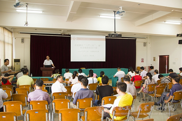 2015年5月28日下午,由李仕钦副院长主讲的《自觉践行“三严三实”做一名合格的党员干部》“三严三实”专题教育党课在我院校本部2145报告厅开讲,学院各部门的相关负责人代表当场听课。