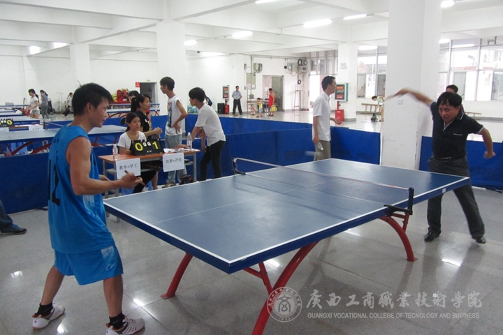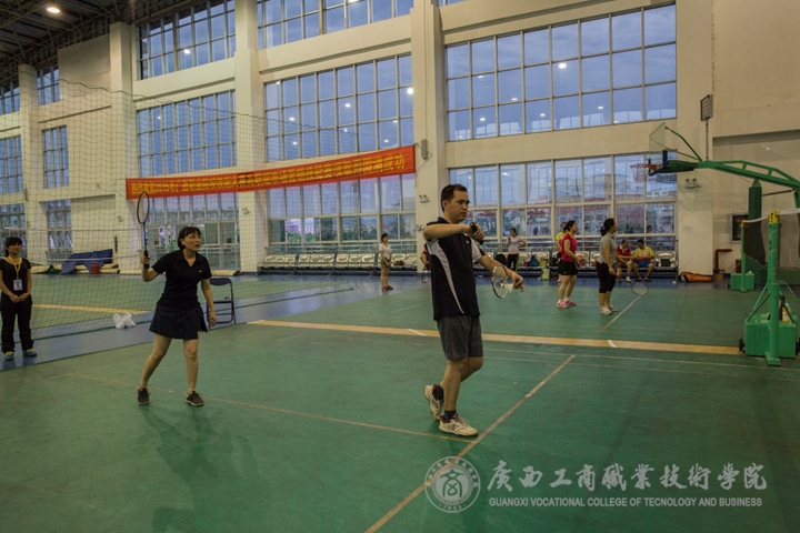 打得最激烈的当然属于羽毛球比赛了,先是男单比赛,现教中心出场的是钮明辉老师,对手是周景贤老师,两位老师都是商院的羽毛球高手,两大高手对决,就看谁能少犯错误,由于周景贤老师主动犯错多,钮明辉老师发挥得更加出色,赢下比赛先为现教中心拿下1分。第二场是女单,现教中心由李梅老师出战对阵朱克敏老师,由于双方实力悬殊,虽然李梅老师拼尽全力,但是最终还败下阵来,虽败犹荣。第三场比赛是混双比赛,现教中心由杨名老师和覃远霞主任出场,开始比分都比较胶着,双方都发挥出应有的水平,最后覃主任和杨老师还是顶不住对方的进攻,输掉了比赛。第四场比赛是男双,现教中心由钮明辉老师和杨名老师出场,教务处和学工处由周景贤老师和廖显图老师出场,双方水平相当,第一局的比分也比较胶着交替上升,最后还是钮老师和杨老师顶住压力先赢一局,第二局由于周景贤老师和廖显图老师失误较多,最终钮明辉老师和杨名老师赢得比赛,把总比分扳回2:2平。决胜盘是女双,现教中心由覃远霞主任和李梅老师搭档决战朱克敏老师和张宇斐老师,开局大家都打得比较谨慎,比分也比较接近,没有拉开,随着比赛推进,虽然覃远霞主任和李梅老师全力抵抗,但是由于对方实力更胜一筹,最后输掉比赛,从而现教中心总比分2:3遗憾的输掉了比赛。
