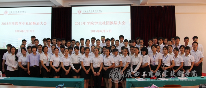 2015年6月17日,我院2015年学生社团换届大会于校本部教学楼2214报告厅隆重举行,学院25个社团集体换届仪式将在此次大会上举行。学院团委副书记陈宇宁老师、学院团委陶晓斌老师、经管系方亮老师,学院学生社团联合会全体成员以及学院25个社团主要干部出席了本次大会。