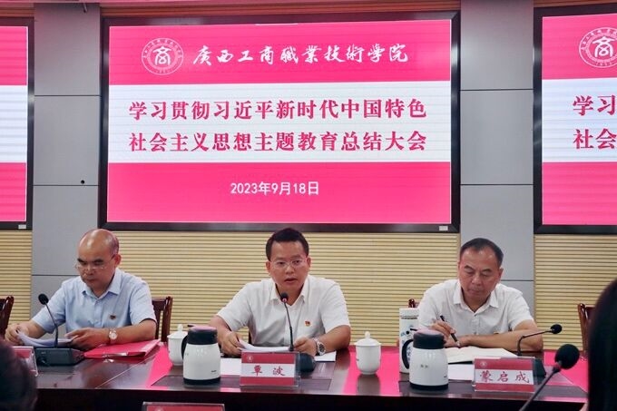 9月18日上午,pp电子官方网站学习贯彻习近平新时代中国特色社会主义思想主题教育总结大会在鹏飞校区召开。会议认真学习贯彻中央、自治区主题教育第一批总结暨第二批部署会议精神,全面深化总结学院主题教育成果,深入分析查找不足,并对巩固深化主题教育成果进行部署。学院党委书记覃武云主持会议并代表学院党委作主题教育总结报告,自治区党委第十二巡回指导组成员覃波到会指导并讲话。